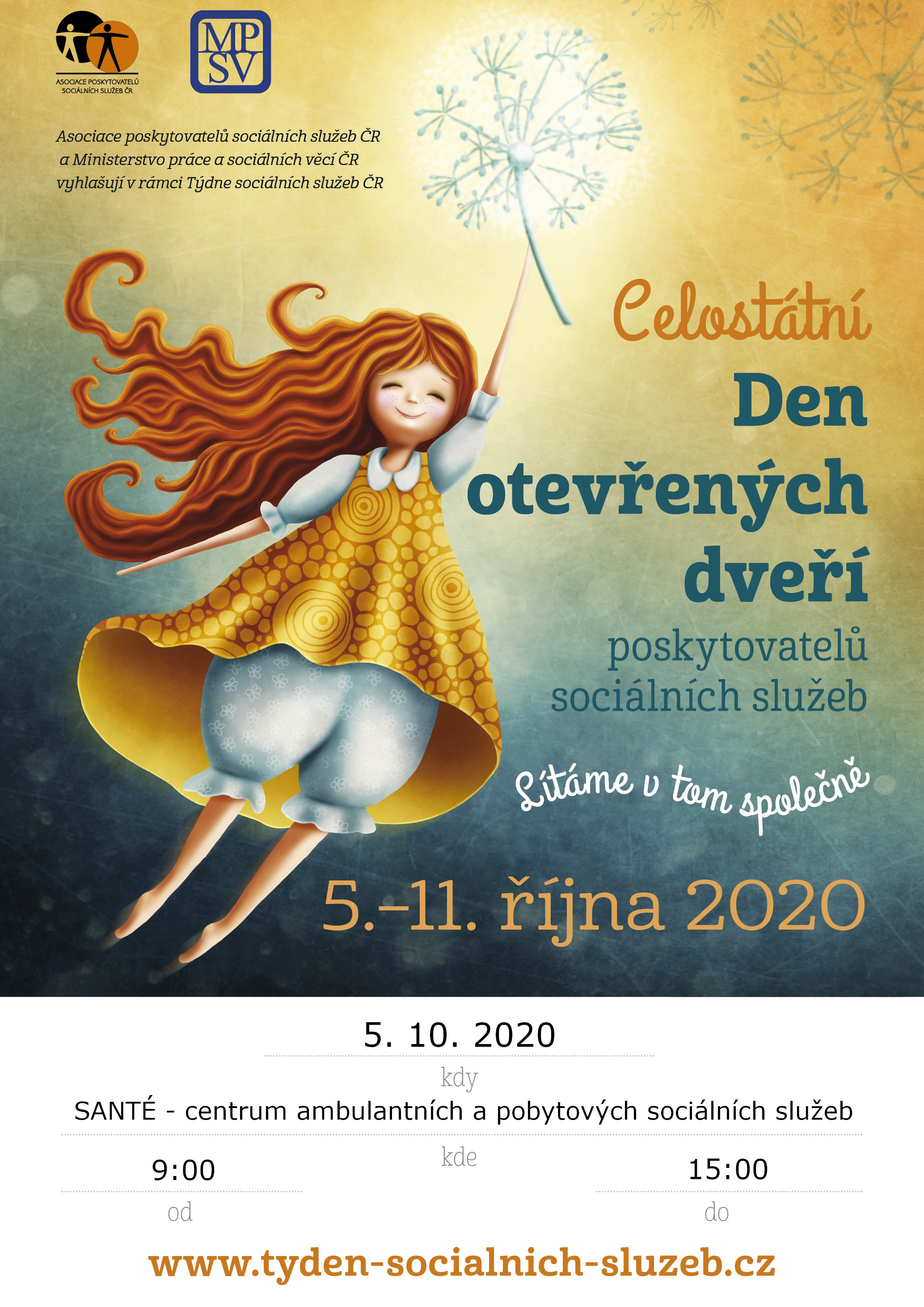 Jako každoročně se naše organizace SANTÉ – centrum ambulantních a pobytových sociálních služeb účastní Dne otevřených dveří u příležitosti Týdne sociálních služeb ČR v týdnu od 5. - 11. 10. 2020. Den otevřených dveří se uskuteční dne 5. 10. 2020 od 9.00 do 15.00 hodin na Denním Stacionáři na ul. Čelakovského, středisku MIKADO na ul. Tajovského a Stacionáři Lipová na ul. Lipová. K vidění budou aktivizační činnosti pro klienty a výrobky z jednotlivých činností a prostory jednotlivých středisek. Všichni jste srdečně zváni.