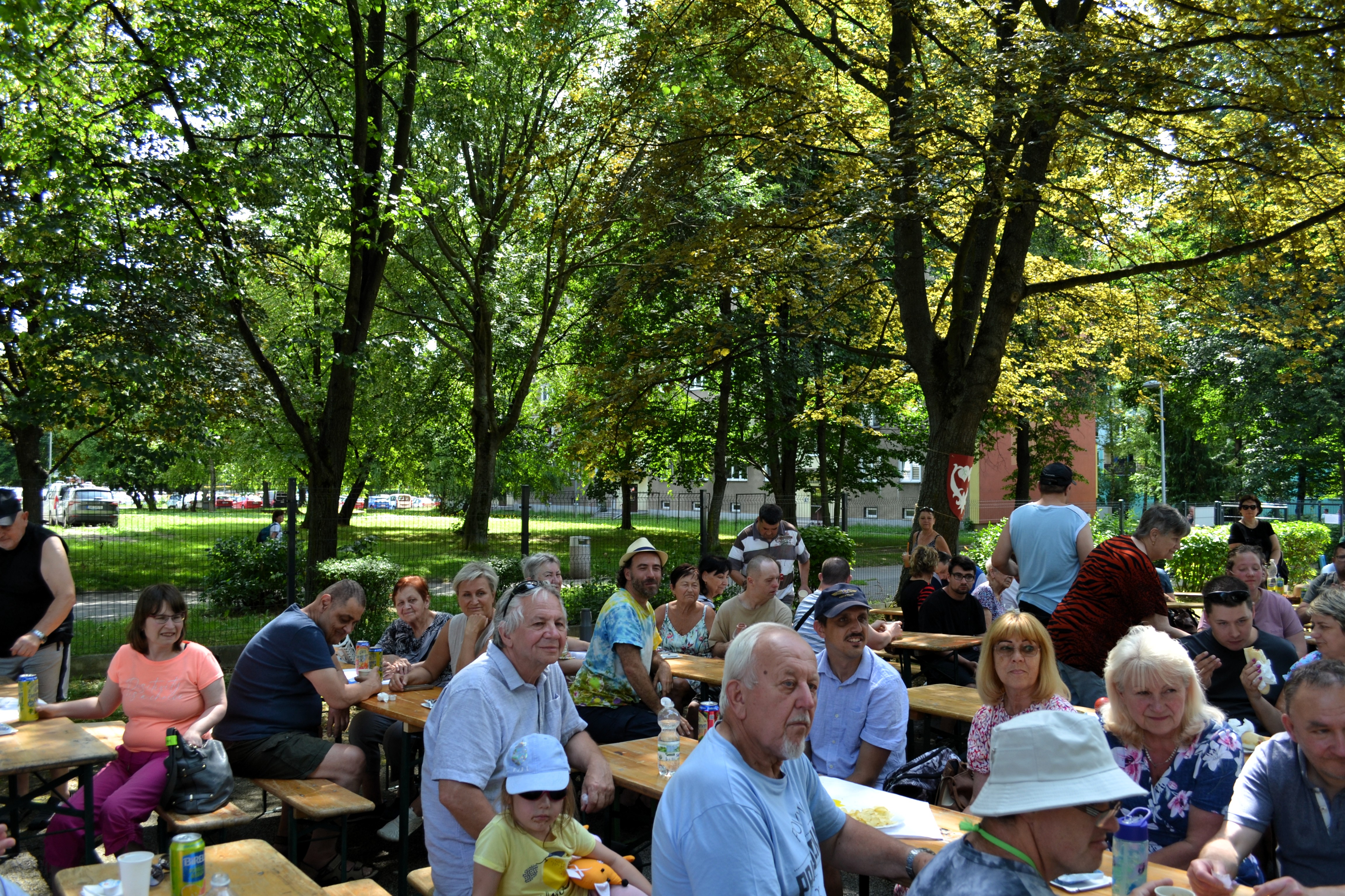 Během celého odpoledne probíhal dobový jarmark s rukodělnými výrobky klientů SANTÉ, stylová krčma s občerstvením i zábavné hry pro klienty.