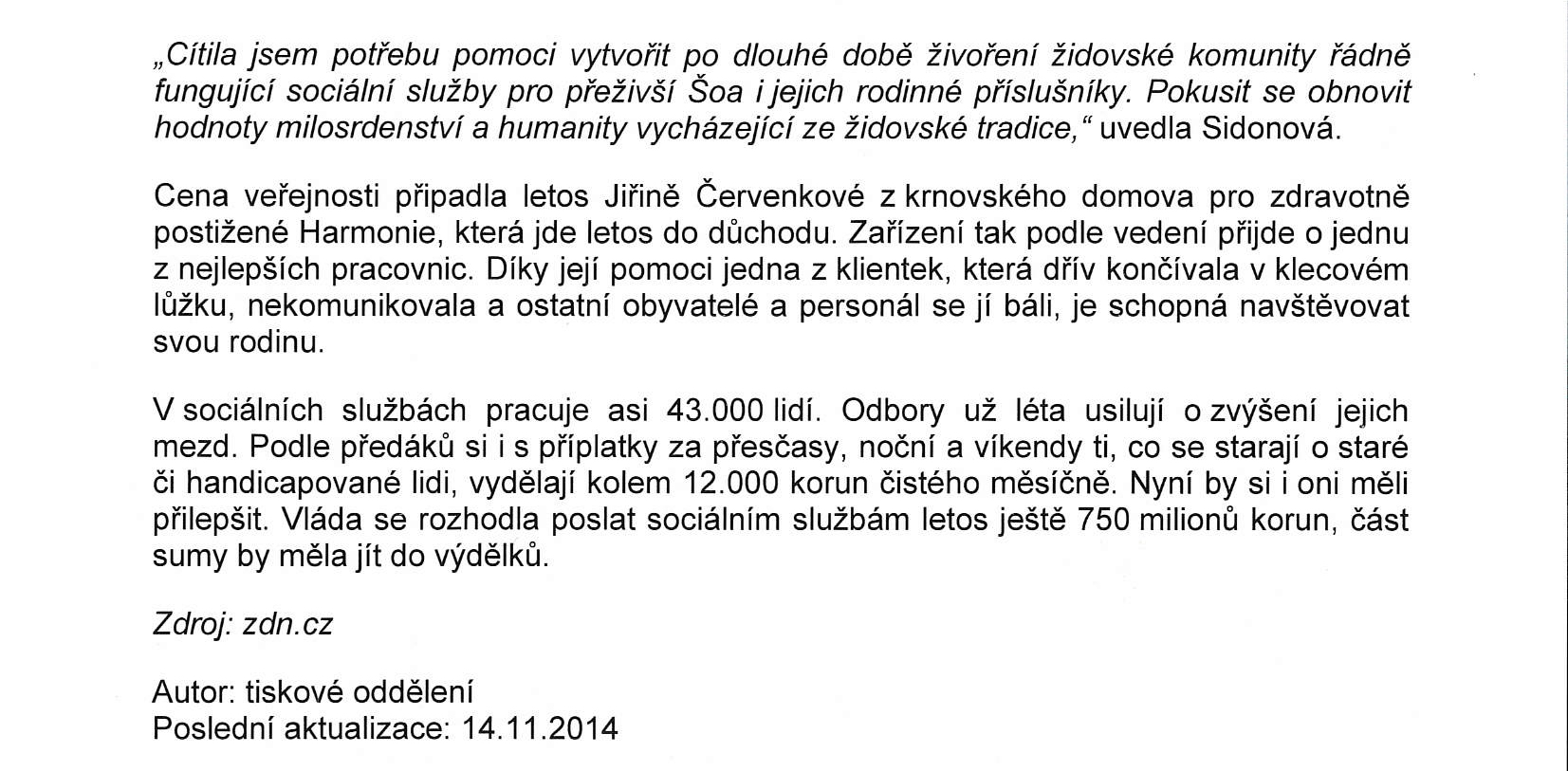Naše organizace je zapsána v registru poskytovatelů sociálních služeb