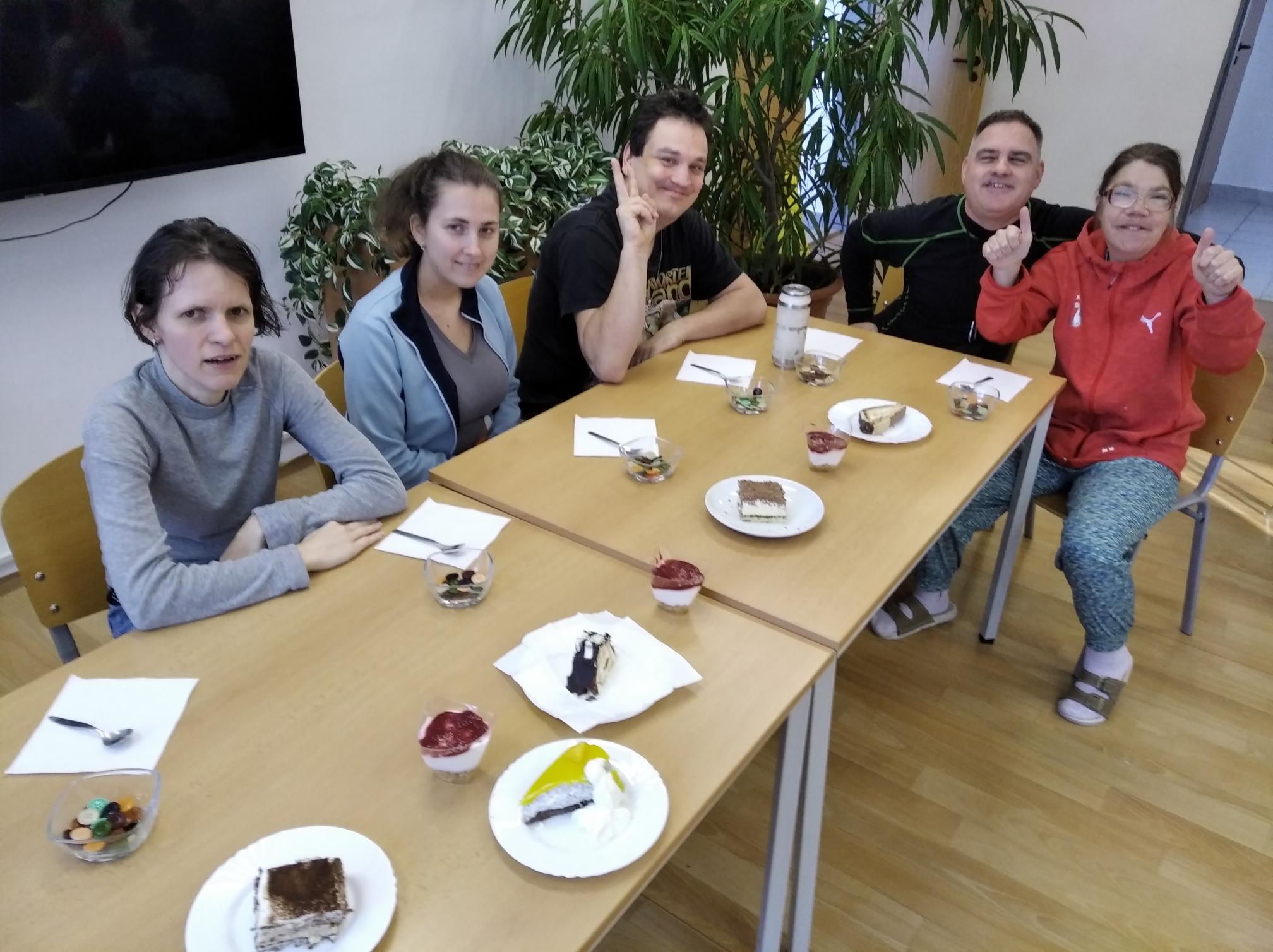 Cílem nebylo jen vytvořit něco dobrého, ale hlavně si společně užít příjemný čas, procvičit spolupráci, jemnou motoriku i samostatnost. Na stolech se postupně objevovaly různé druhy nepečených zákusků - vrstvené dezerty do pohárků, řezy, krémové dortíky i sladké kombinace s ovocem. Každý výrobek byl originál a na každém bylo vidět, kolik péče a snahy do něj autoři vložili. Klienti své výtvory představovali ostatním, porovnávali barvy, chutě i nápady a nakonec přišlo to nejočekávanější – ochutnávka. Vítězem se stal vlastně každý, kdo se zapojil, protože hlavní výhrou byl společný zážitek a radost z toho, co se podařilo vytvořit.