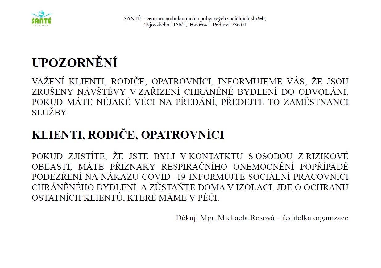 Posláním příspěvkové organizace SANTÉ - centrum ambulantních a pobytových sociálních služeb je poskytování kvalitních sociálních služeb lidem s mentálním postižením tak, aby mohli i při jejich užívání vést co nejsamostatnější život.
