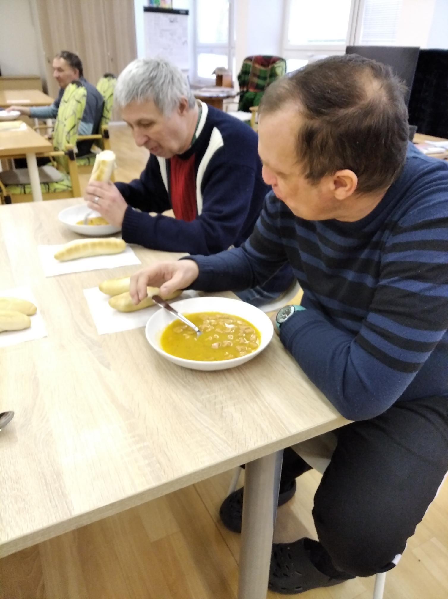 Poctivá domácí gulášovka s rohlíkem - to byla dnešní svačinka jenž tvořila aktivizační činnost Šicí.