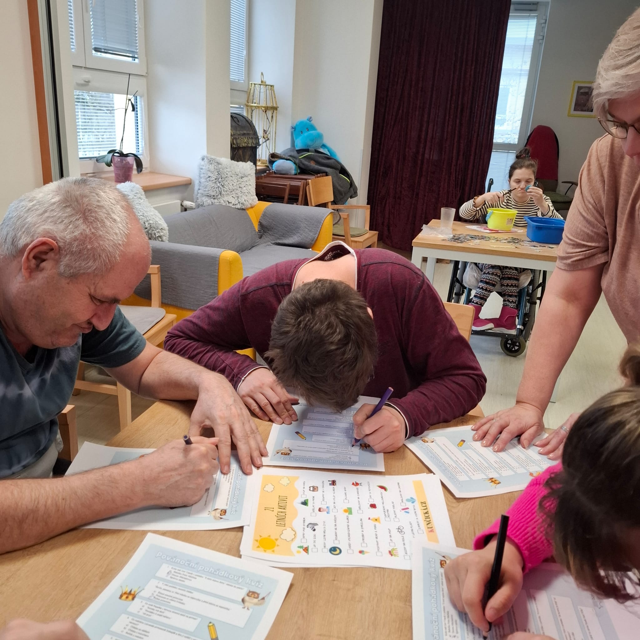 Aktivita byla zaměřená nejen na znalosti, ale také na podporu komunikace, přemýšlení a vzájemné pomoci. Klienti se do kvízu pustili naplno a bylo vidět, že je úkoly baví.