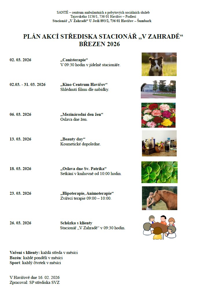 STACIONÁŘ V ZAHRADĚ: PLÁN AKCÍ NA BŘEZEN