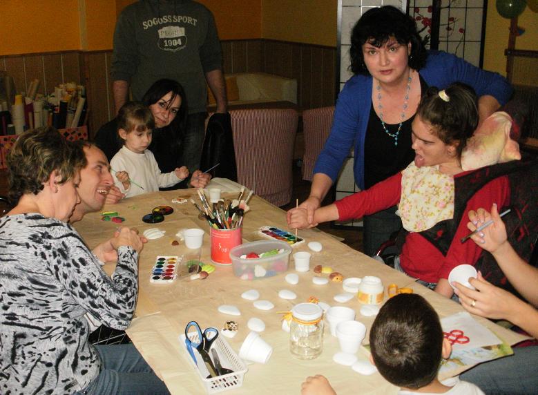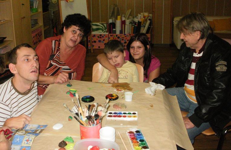 Dne 19. 10. 2011 proběhlo v Denním stacionáři „Tradiční podzimní odpoledne s rodiči“. Cílem tohoto setkání bylo umožnit rodičům seznámit se s výtvarnými aktivitami a činnostmi probíhajícími ve středisku. Rodiče si mohli s dospělými uživateli vyzkoušet ubrouskovou techniku na kamínek nebo květináčky a barvení odlitků ze sádry. Výrobky si pak odnesli s sebou domů. Pro děti byla připravena možnost malování prstovými barvami na výkres. Někteří rodiče využili možnost vyzkoušet si program SymWriter na počítači s dotykovým monitorem. Tento program se v našem středisku využívá k nácviku alternativní komunikace. Bc. Lenka Milúchová |