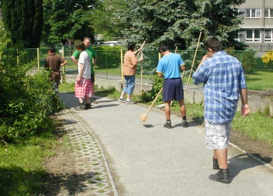 V neděli 22. 5. 2011 v dopoledních hodinách navštívila skupinka mladých chlapců a zaměstnanců Dětského domova se školou v Těrlicku naše středisko Denní stacionář na ul. Čelakovského v Havířově. Tito mladí lidé nám v rámci svých volnočasových aktivit pomohli s úpravou zahrady (úprava rozježděného terénu, zasetí trávy). Při této příležitosti si prohlédli i prostory Denního stacionáře a vyzkoušeli si rehabilitační a didaktické pomůcky. Protože se jim v našem středisku moc líbilo, přislíbili účast na akcích pořádaných naší organizací, např. společné utkání ve fotbale, stolním tenise aj.