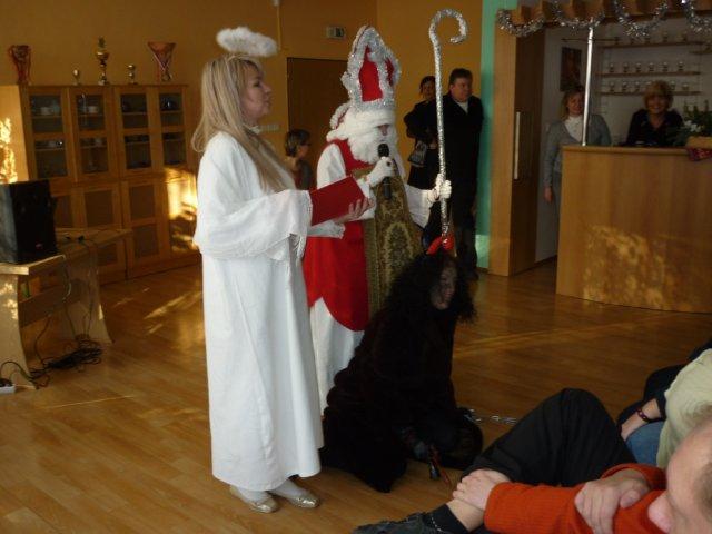 Svým osobitým a velmi vtipným způsobem nás potěšili tři kouzelné postavy, které nezapomenutelně předali dary klientům, jež pro ně připravila agentura GOBI s.r.o. Na této akci jsme také hodnotili malířskou soutěž. Jako nejkrásnější obraz vyhodnotila porota zimní krajinu od Aleše Cholevy.
