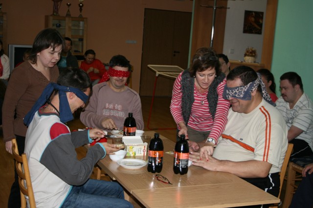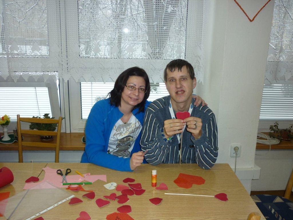 Oslavu tohoto svátku jsme s našimi uživateli pojali netradičně. Obvykle si zamilovaní předávají různé dárky a přáníčka. Naši uživatelé si pro své protějšky připravili dárky v podobě přípravy jídla. Ženy smažily palačinky zdobené šlehačkou a ovocem. Muži přichystali obložené mísy ve tvaru srdce. Dopolední akce byla spojená se zábavným programem, který tvořily dvě soutěže: „Nakrmím tě poslepu“ a „Poznej moji profesi“, kdy pomocí pantomimy uživatelé ztvárnili různé druhy profesí. Poté proběhla volná zábava, kterou si uživatelé zpříjemnili tancem.