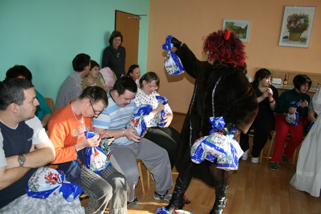 MIKULÁŠSKÁ NADÍLKA 5. 12. 2013 Den, který je úzce spjat s řinčením řetězů a cinkotem andělského zvonku za doprovodu Mikuláše, anděla a čerta, byl mnohými klienty netrpělivě očekáván. Tři bájné postavy nepřišly s prázdnou, měly nejen pytel na hříšníky, ale také koš plný balíčků s překvapením, které pro ně připravila agentura GOBI s.r.o. Mikuláš musel několikrát napomínat čerta, který neustále kradl balíčky a chtěl zamazat uhlím všechny přítomné. Anděl všem přítomným balíčky vrátil a přimluvil se i za hříšníky. Nakonec si Mikuláš se svými pomocníky vyslechl koledy a rozloučil se. A čertův pytel?... ten naštěstí zůstal prázdný a doufejme, že tomu tak bude i příští rok. Zpracovala: M. Bayerová |