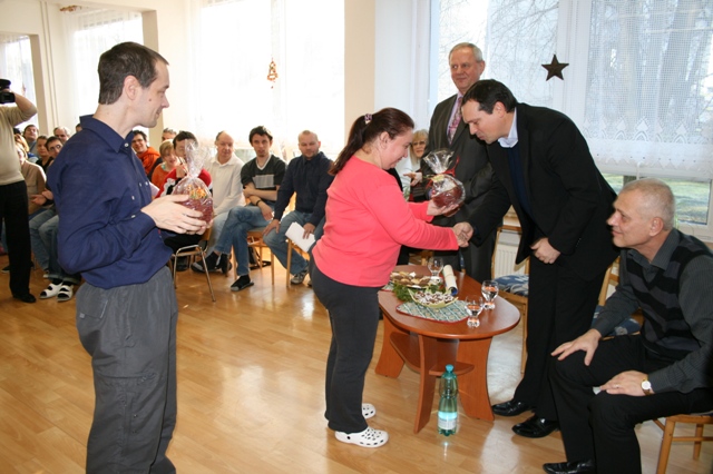 TĚŠÍME SE NA VÁNOCE 20. 12. 2013 Předvánoční posezení bylo všemi velmi očekávanou akcí. Povídali jsme si nejen o tom, proč se Vánoce slaví, jak tyto svátky slaví každý z nás a jak se v rodinách odlišuje štědrovečerní večeře i vánoční tradice. Aby nezůstalo jen u slov, louskali jsme ořechy, krájeli jablka, pouštěli skořápkové lodičky a házeli střevícem. Poté jsme se rádi nechali zlákat ke zpěvu koled a ochutnávání cukroví. Zpracovala: E. Kučerová SANTÉ DOSTÁVÁ DÁRKY 17. 12. 2013 Všudypřítomná atmosféra Vánoc umocněná zpěvem koled přivítala vzácné hosty. Tím byli primátor města Havířova s dalšími představiteli vedení města. Po doznění tónů byli naši hosté nejdříve podrobeni náročné zkoušce ověřující jejich připravenost. Ze všech stran se na ně sypaly otázky klientů, které byly zaměřeny na různé oblasti, například nové investice města, sport, kultura. Toužebně očekávaná chvíle – rozbalování dárků – přinesla nám všem velkou radost. Dary, budou dobře využity a pomohou zdokonalit kvalitu námi poskytovaných služeb. Děkujeme. Zpracovala: Z. Nowaková PREZRNTACE ORGANIZACE NA AKCI VÁNOČNÍ MĚSTEČKO 16. - 18. 12. 2013 Každý rok nám Vánoční městečko v Havířově přináší tradiční trh, jehož součástí je skleněný stánek uprostřed náměstí. V letošním roce nám patřil na tři dny. Tento stánek je každoročně zázemím organizací poskytujících sociální služby a zároveň místem, kde si děti mohou samy vytvořit malý dárek. Dekorativní předměty, které zhotovují šikovné ruce našich klientů, vzbudily obdiv a byly velmi žádané. Přijali jsme s potěšením, že mnohé z dětí se do našeho království vracely opakovaně, aby vytvořily krásný dárek pro své rodiče. K dokonalé předvánoční atmosféře chyběl už jen sníh ... Zpracovala: Lenka Jurczková |