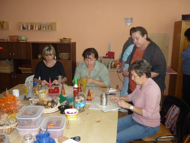 1. 10. 2013 Hřejivý pocit v duši a útulnou atmosféru vždy dokáže navodit plamen svíčky. Co všechno předchází tomu, než dojde k jejímu zapálení, jsme se mohli blíže dozvědět na společné akci naší organizace a členů sdružení HELP KLUBU. Přítomní si vyzkoušeli různé techniky zhotovování svíček a také jejich dekorování pomocí přírodních materiálů. V příjemné atmosféře jsme si vyměnili zkušenosti a předali zajímavé informace z tvořivé činnosti. Zpracovala: Bc. D. Cimalová DEN OTEVŘENÝCH DVEŘÍ PRO SPLEČNOST PRO PODPORU LIDÍ S MENTÁLNÍM POSTIŽENÍM Zájem o to, co nabízí naše organizace, přivedl členy Společnosti pro podporu lidí s mentálním postižením pod naši střechu. Prohlídka všech středisek proběhla dopoledne za plného provozu. Členové společnosti ocenili pestrou nabídku aktivizačních činností, příjemné a útulné prostředí a se zájmem sledovali, jak jsou naši uživatelé zruční a sdílní. Návštěva probíhala v přátelské atmosféře, což jistě může být příslibem budoucí spolupráce.